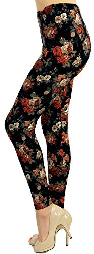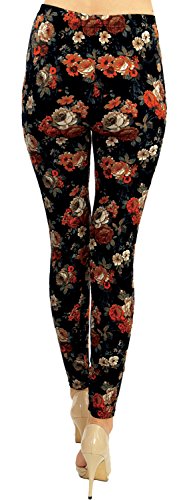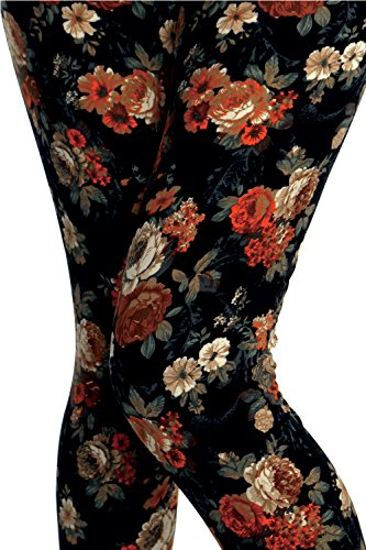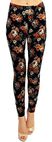 VIV Collection Regular Size Printed Brushed Leggings (Volcanic Rose), One size