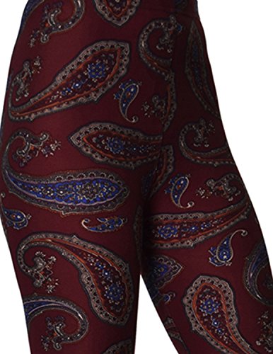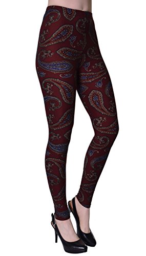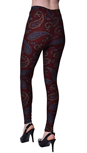 Regular Size Printed Brushed Leggings (Burgundy Paisley)