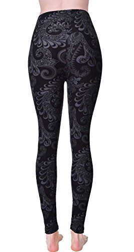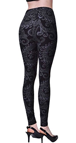 VIV Collection Regular Size Printed Brushed Leggings (Gray Timeless Paisley)