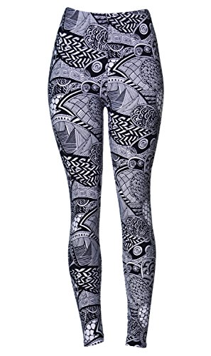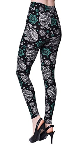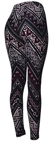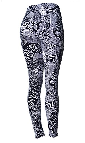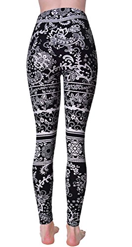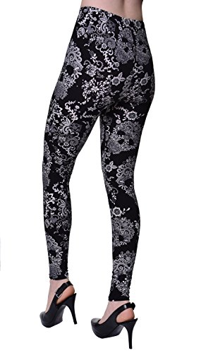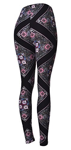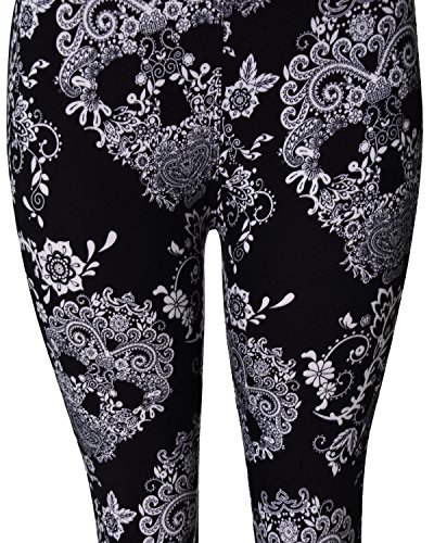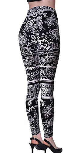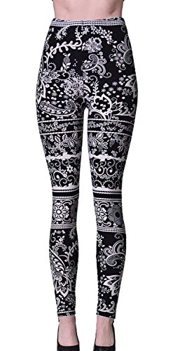 VIV Collection Regular Size Printed Brushed Leggings (Black White Paisley Diamond)