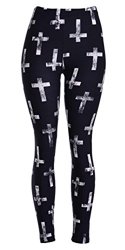 VIV Collection Regular Size Printed Brushed Leggings (Antique Cross)