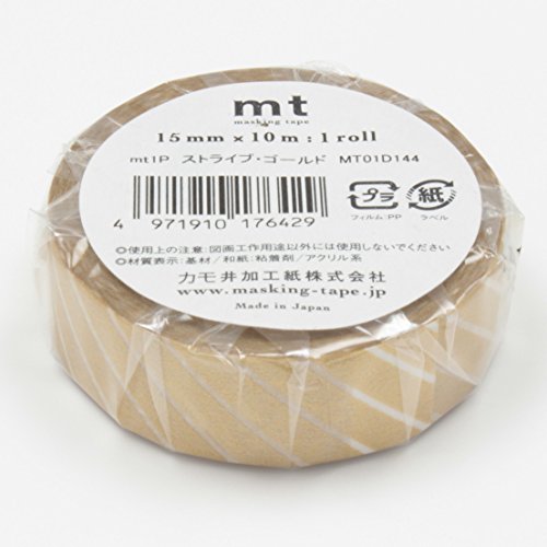 MT Patterns Washi Paper Masking Tape, 3/5" x 33', Stripe Gold (MT01D144)