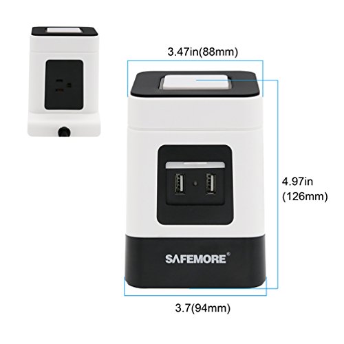 SAFEMORE Power Strip-High Quality and StandardSpecial Vertical Design: 3 AC Outlets+ 2 USB Outlets saves space and you can get power at any angle you want for multiple devices.