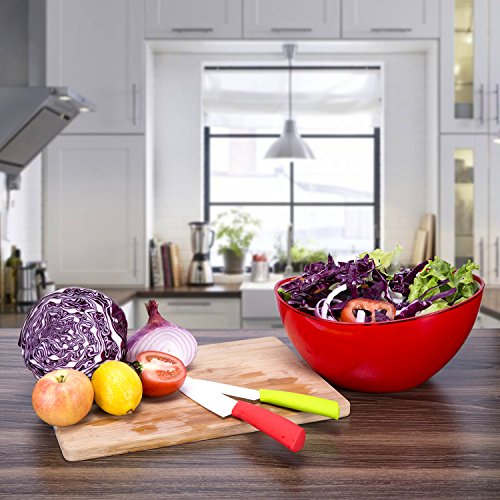 The bowl measures:10.8 x 9.5 x 5.6 inches,beautiful colors and large size, Versatile enough for everyday use,it is easy to clean by hand if needed.