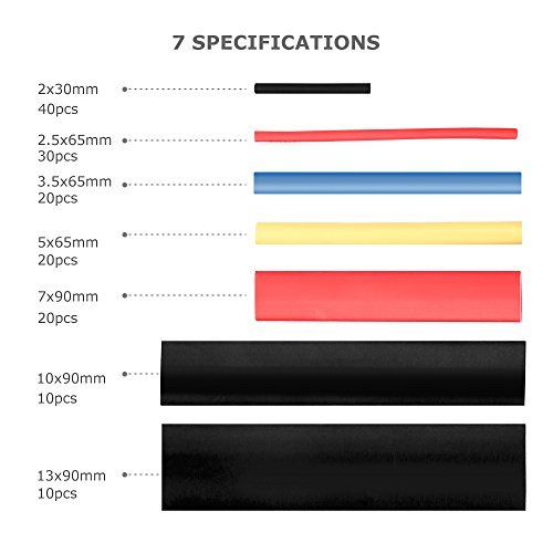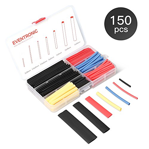 150PCS Heat Shrink Tubing 2:1, Eventronic Electrical Wire Cable Wrap Assortment Electric Insulation Heat Shrink Tube Kit With Box(4 colors/7 sizes)