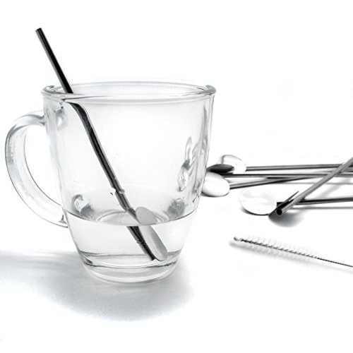 Fine Stainless Steel Reusable Spoon Drink Straw Set Long Spoons / Stirrer Flatware for Your Home 6PCS Value Set With Free Cleaner
