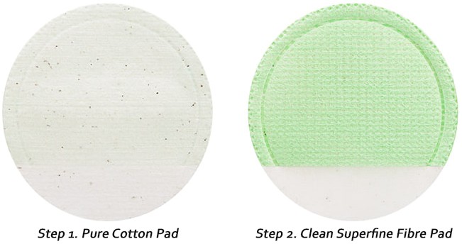side. Gently roll on pore concerned areas using the Step 2. Clean Superfine Fibre Pad side