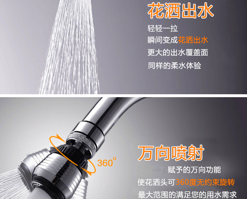 360°rotation: Water can easily covers the whole sink,never worry about clean the sink in cold winter.