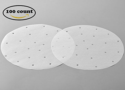 KLEMOO 100PCS Round Perforated Parchment Paper Liners 9 inch, Non-stick, Make Clean up a Breeze, Perfect for Bamboo Steamer, Air Fryer, Baking, Cooking