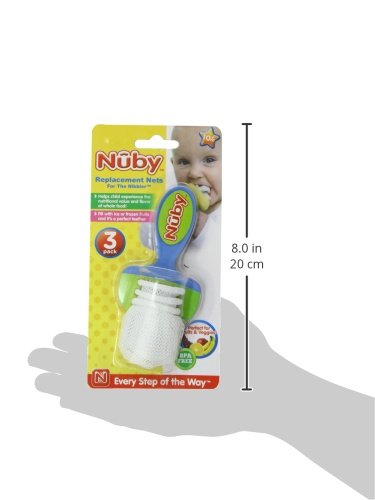 -. Binding : Baby Product -. Brand : Nuby -. Feature : Replacement Nets to use with the Nuby Nibbler / To be Used as a Feeding Aid for Baby / Dishwasher Safe -. Label : Nuby -. Manufacturer : Nuby -. ProductGroup : Baby Product -. ProductTypeName : BABY_PRODUCT -. Publisher : Nuby -. Studio : Nuby -. Title : Nuby Replacement Nets for the Nibbler