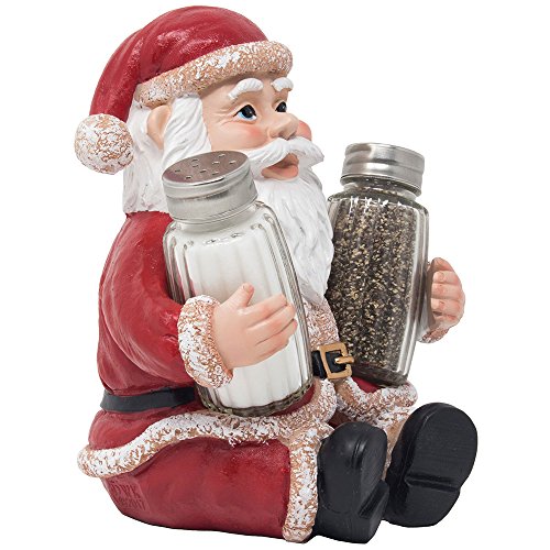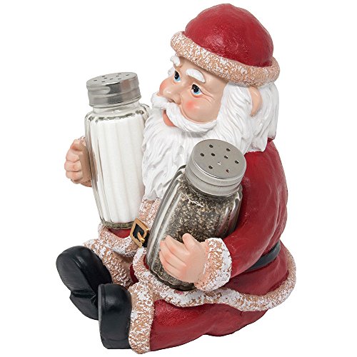 Whimsical Santa Claus Salt and Pepper Shaker Set Figurine As Display Stand Spice Rack Holder Statue For Decorative Christmas Kitchen Decor & Holiday Decorations Or Xmas Gifts for Mom