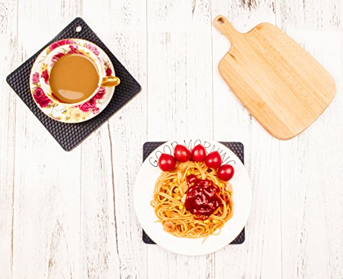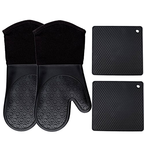 •Complete Kitchen Cooking Set – This unique accessory set comes with two insulated silicone oven mitts and two silicone potholer trivets measure 7" x 7" for better kitchen and grill use.