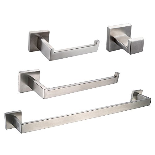 Leyden Modern Stainless Steel 4-Pieces Bathroom Sets, Towel Hook Towel Bar Towel Ring Toilet Paper Holder Hardware Bath Accessory, Brushed Finish