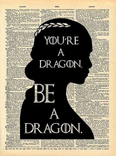 Game of Thrones Art - Khaleesi Dragon Quote Vintage Dictionary Print 8x10 inch : You're a Dragon, Be a Dragon - QUALITY PRINTS - Focusing on making quality prints for the Home & Office. This 8x10 print is Ready-To-Frame and will fit perfectly in any Frame with Mat when delivered. Thank You