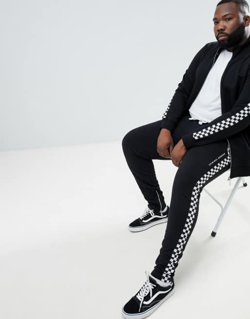 Criminal Damage PLUS Skinny Joggers With Checkerboard Stripe Exclusive To ASOS