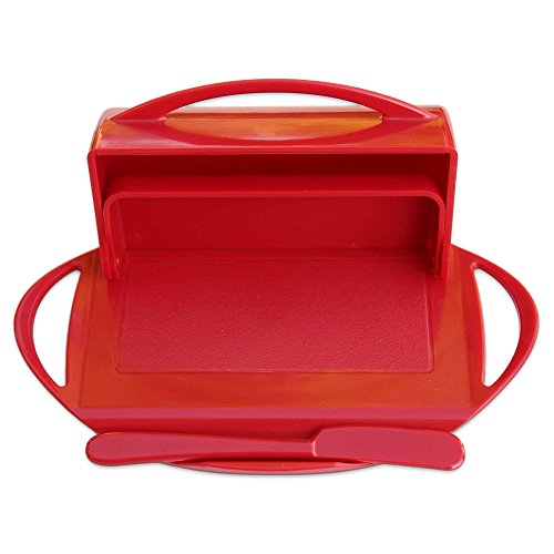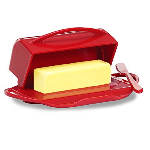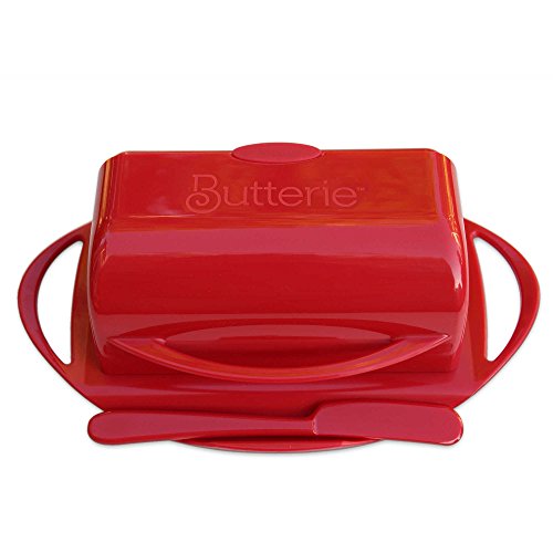 Studio : All4You Publisher : All4You Product Description BPA-free. Not only is the Heritage Butter Dish a decorative piece for the table during mealtime, but it's also a functional tool in the kitchen. Great for cream cheese, too. Able to go from the refrigerator to the microwave to soften butter for easy spreading during meals. Shatterproof. Use the Butterie Flip-Top Butter Dish for an easy way to store butter. Non-slip base, the butter dish's construction also means it retains cooler temperatures longer, helping sticks of butter stay together on a warm outdoor table. Protects butter while keeping your countertops and tables clean. Easy-grip handles. Features a hidden back wall for keeping the butter knife clean. Includes a spreader with a specially designed cradle. 0