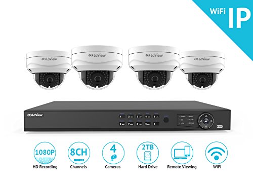 -. Binding : Electronics -. Brand : LaView -. EAN : 0849897008481 -. Feature : View important details in sharp 1080P definition with our powerful 2MP cameras. / Protect your property after hours with up to 100 feet of clear IR night vision. / Set up your Wifi-ready cameras up to 150 feet away from your router (distance may vary based on environment). / Point and shoot with super wide angle cameras that are IP66 weatherproof with operating temperature range of -22°F to 140°F / Save on time and cabling costs with our effortless 3-Step Installation -. Label : LaView -. Manufacturer : LaView -. Model : LV-KNW984DT04-T2 -. MPN : LV-KNW984DT04-T2 -. PackageQuantity : 1 -. PartNumber : LV-KNW984DT04-T2 -. ProductGroup : Photography -. ProductTypeName : SURVEILANCE_SYSTEMS -. Publisher : LaView -. Studio : LaView -. Title : LaView 1080P Wi-Fi Wireless Security Camera System - 8 Channel IP NVR with 2TB HDD, 4 2MP Wifi Dome Indoor/Outdoor, 100ft Night Vision Surveillance System -. UPC : 849897008481
