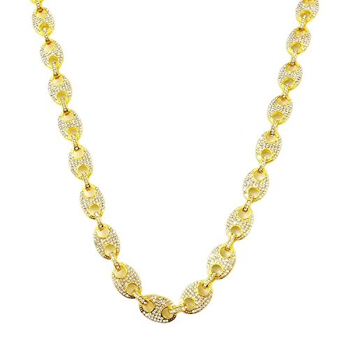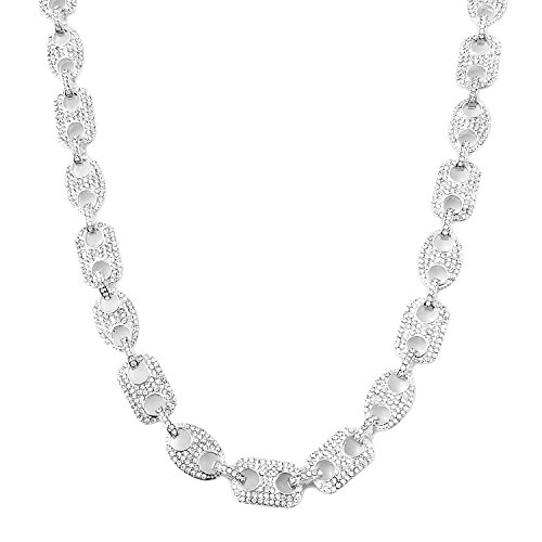-. Title : HH Bling Empire Mens Iced Out Hip Hop Silver Gold Faux Diamond Paved Puffed Marine Linked Chain Necklace 24"