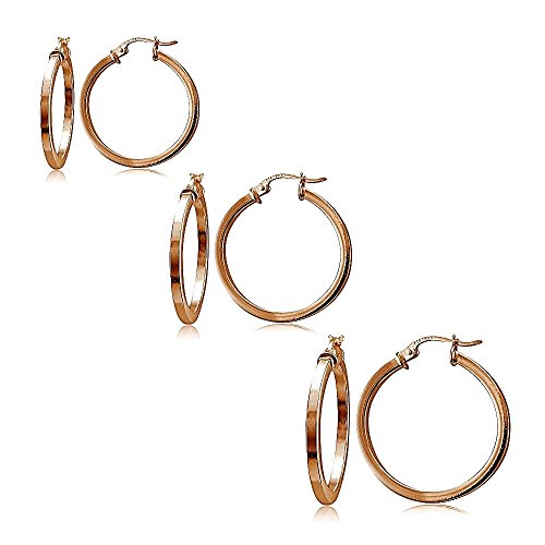 •These earrings feature a set of three different size hoops ranging from 25mm, 30mm and 35mm.