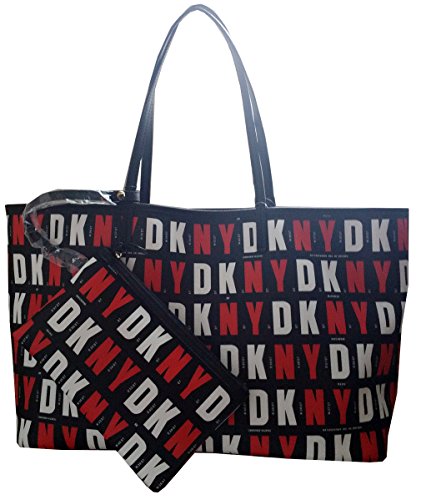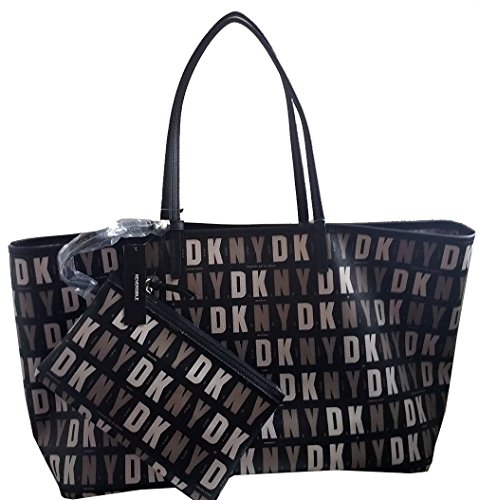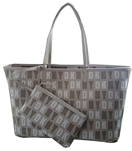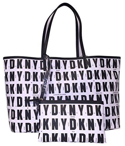 DKNY Reversible tote, with DKNY Logo Signature PVC, A detachable small pouch size (L 8.5"x H 5.25"), Double shoulder strap with 9" drop, fabric lining