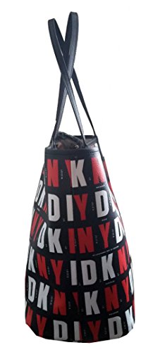 Black /Black PVC, coated red/white logo. Open top Measurement: L 19" (Top) L 16 (Bottom) x H 11" x W 7" Brand : DKNY EAN : 0795730067439 Product Dimensions(LxWxH) : 49x18x28cm ; 635 g