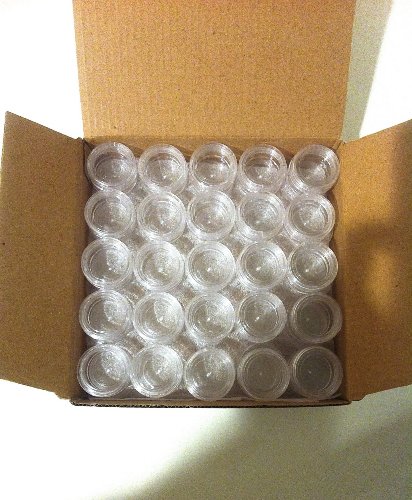 - New Cosmetic Jar's Factory Second C Grade Empty Clear Plastic Cosmetic Containers 5 Gram Size: Diameter: 31 mm/1.2 inch Height: 16.5 mm/0.6 inch. (Comes With 1 Free Myo Eyeshadow Sample) (10 Pieces)