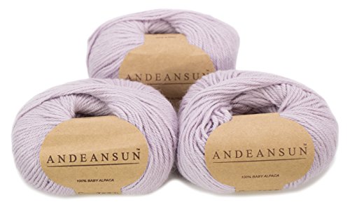 100% Baby Alpaca Yarn Skeins - Set of 3 - Various Colors - AndeanSun - Luxuriously soft for knitting, crocheting - Great for baby garments, scarves, hats, and craft projects (Soft Lavender)