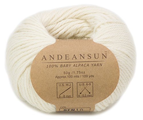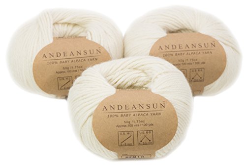 100% Baby Alpaca Yarn Skeins - Set of 3 Ivory - AndeanSun - Luxuriously soft for knitting, crocheting - Great for baby garments, scarves, hats, and craft projects Ð IVORY
