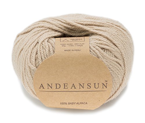 100% Baby Alpaca Yarn Skeins - Set of 3 (Beige) - AndeanSun - Luxuriously soft for knitting, crocheting - Great for baby garments, scarves, hats, and craft projects Ð BEIGE