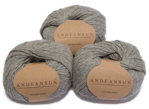 100% Baby Alpaca Yarn Skeins - Set of 3 (Medium Gray) - AndeanSun - Luxuriously soft for knitting, crocheting - Great for baby garments, scarves, hats, and craft projects Ð MEDIUM GRAY
