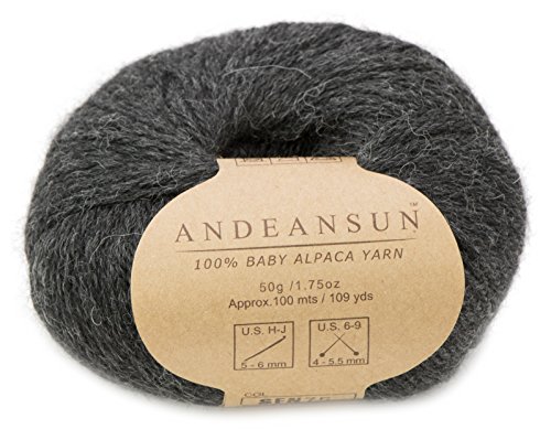 100% Baby Alpaca Yarn Skeins - Set of 3 (Dark Grey) - AndeanSun - Luxuriously soft for knitting, crocheting - Great for baby garments, scarves, hats, and craft projects - DARK GREY