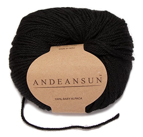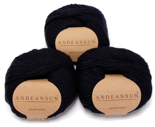 100% Baby Alpaca Yarn Skeins - Set of 3 (Black) - AndeanSun - Luxuriously soft for knitting, crocheting - Great for baby garments, scarves, hats, and craft projects - BLACK