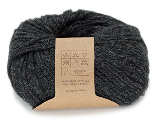100% Baby Alpaca Yarn Skeins #4 Worsted, Afghan, Aran - SET OF 3 (Charcoal) - AndeanSun - Luxuriously soft for knitting, crocheting - Great for baby garments, scarves, and hats - CHARCOAL