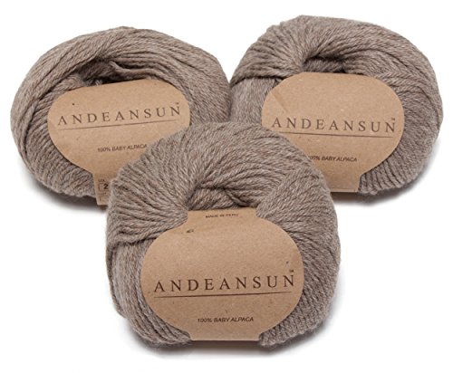 100% Baby Alpaca Yarn Skeins - Set of 3 (Heather Light Brown) - AndeanSun - Luxuriously soft for knitting, crocheting - Great for baby garments & other craft projects - HEATHER LIGHT BROWN