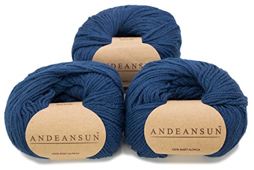 100% Baby Alpaca Yarn Skeins - Set of 3 (Dark Blue) - AndeanSun - Luxuriously soft for knitting, crocheting - Great for baby garments, scarves, hats, and craft projects Ð DARK BLUE