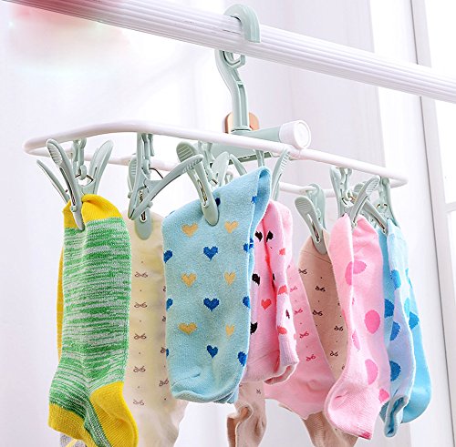 - -12 clips,organizer different kinds of washed stuffs well,dry lingerie,bras,socks,underwear, baby clothes,cloth diapers, intimates, hats and other small delicate items will be one happy thing.Specially suitable for hanging baby or kids laundry.