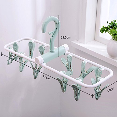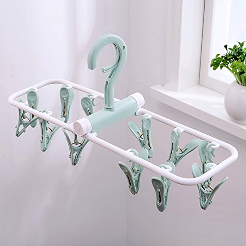 SUOWO Folding Portable Clip Drip Hangers for Baby Clothes Socks Laundry Drying Space Saving Travel Rotatable Plastic 12 Clips (Pale Turquoise)