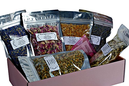 - Premium Botanical Kit: a collection of SIX premium all natural botanical flowers and buds. 1.5 CUPS per bag of Jasmine, Corn Flowers, Pink Rose Buds & Petals, Ultra Blue Lavender, Marigold (Calendula) and Chamomile.