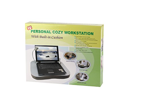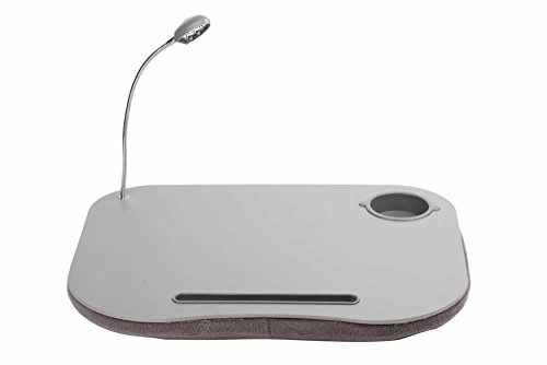 -. Feature : Equipped With Built-in Cushion. LED Light, Drink Holder, and Pen Stylus Holder / 12'' Flexible Goose Neck LED Lamp with On/Off Switch. Battery Operated / Built-in Cushion Creates a Steady, Comfortable Workstation / Flexible LED Lamp Gives You Controlled Lighting / Lightweight and Portable. Measures: 15'' x 19'' x 2''