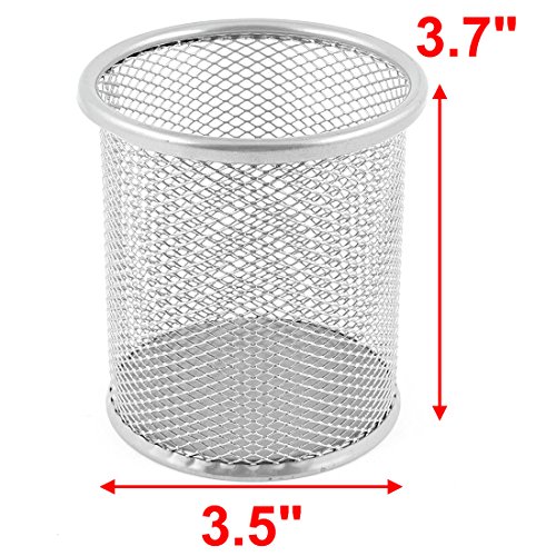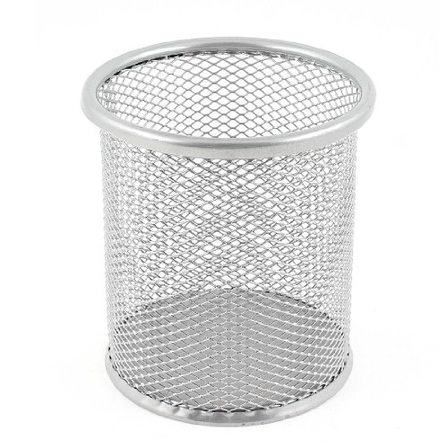 uxcell Silver Gray Metal Mesh Cylinder Shaped Pen Pencil Holder Container