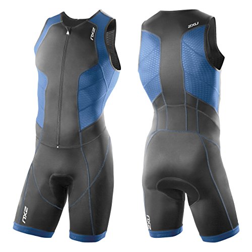 2XU Men's Full Zip Trisuit, Small, Charcoal/Pacific Blue