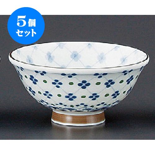 원본상품명: 5個セット 飯碗(磁器) ?量反茶碗格子の花?(大) [134 x 64mm] 和食器 料亭 旅館 ?食店 業務用