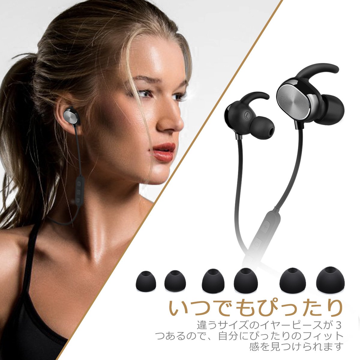 There are three earpieces of different size, so you can find a fitting fit for yourself.