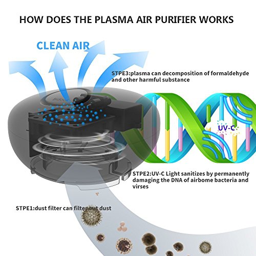 - Wide Usage Range: Plasma air filter can decompose formaldehyde effectively,pollen ,smoke and other harmful substances in the air. 86 square foot scope of application allows you to use the purifier in every corner of your house,such as baby's room,bedroom room,shower room,office and so on. What's more,you can even place the air Cleaner into your new car and pram.