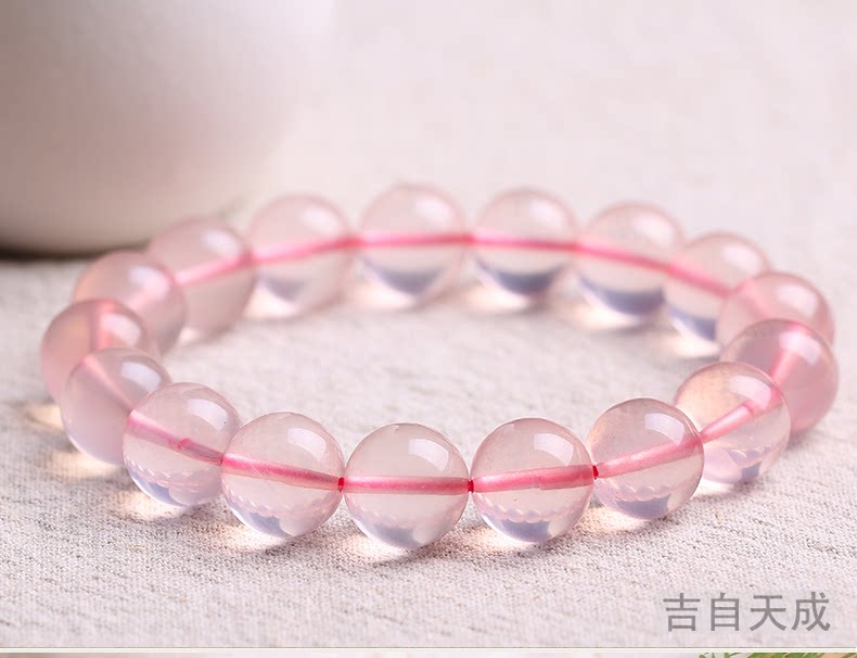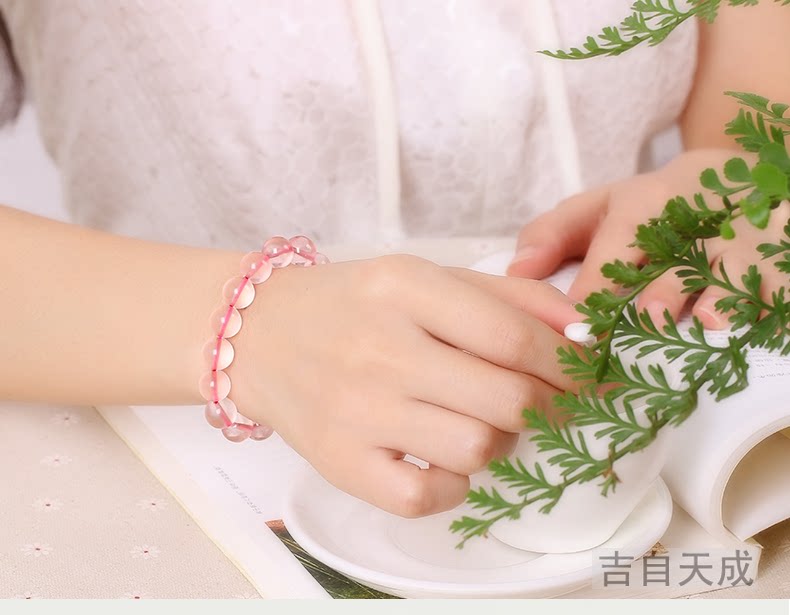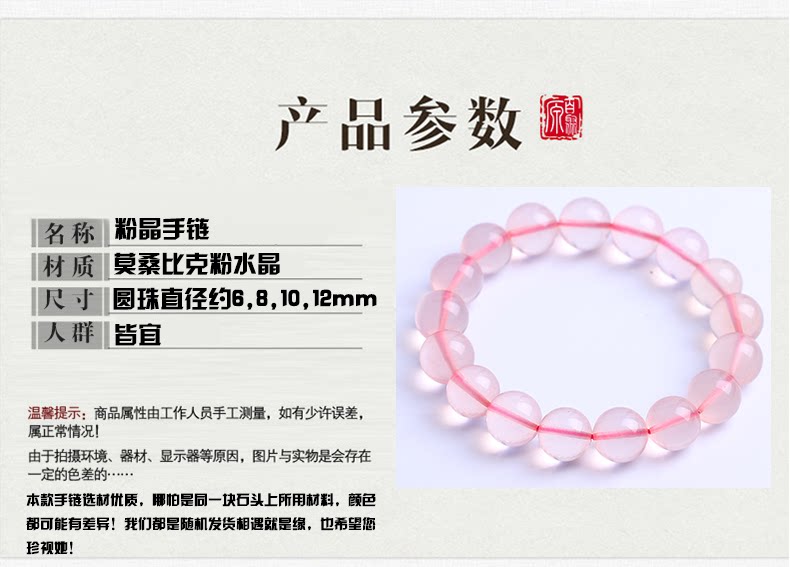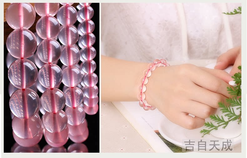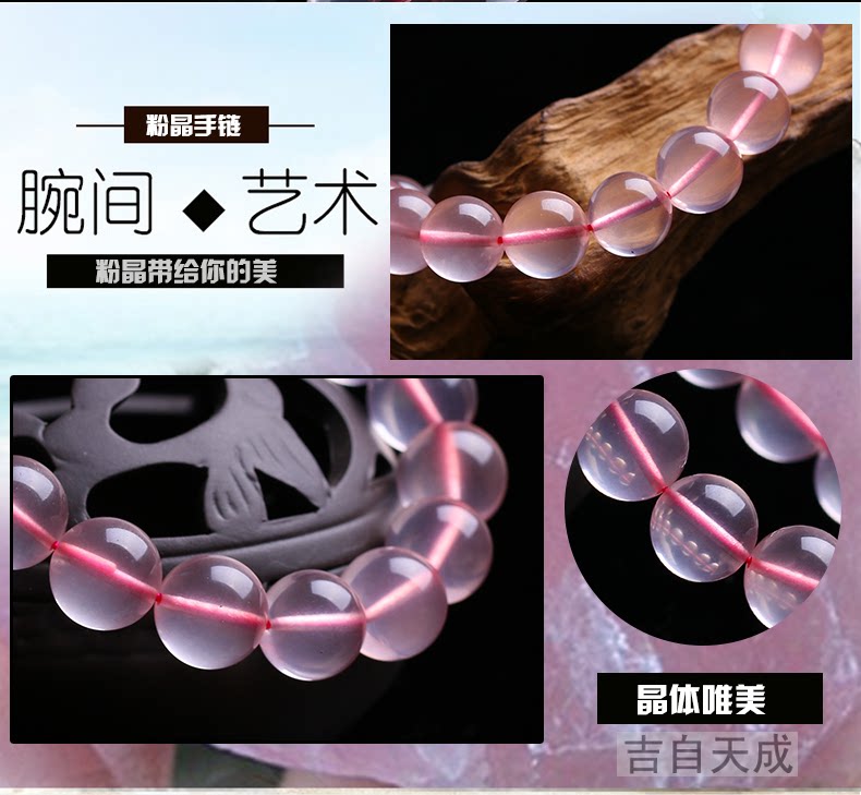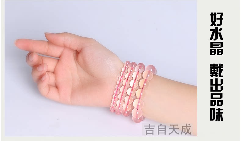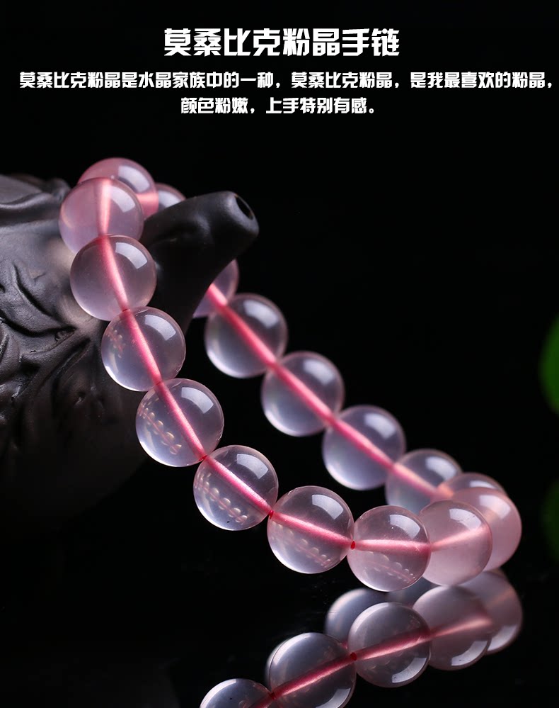 开光粉水晶手链 冰种莫桑比克粉晶手串时尚饰品女送女友