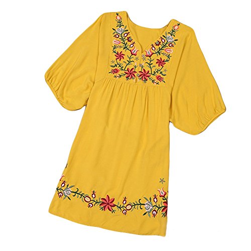 -. Feature : Material: Cotton Blend / Size: One size fits to US L Length 30.3"/77cm; Bust 42.5'/108cm; Sleeve 13.7'/35cm;Shoulder 12.9'/33cm; / Style:Causal, street way, leisure / Pattern: Flowers embroidered / Season:SP.R.Ing, Summer and autumn. Asher Fashion ladies embroidery floral peasant dress blouse shirt tops. it's a long tops for pettie girls, can wear as a dress. Very beautiful flowers embroidered, so cute and fashion, loosen, big ladies also fit well, can be wear as a maternity dress