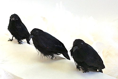 Black Feathered Small Halloween Crows - 3 Pc Black Birds