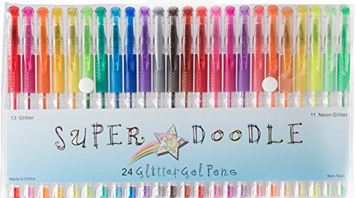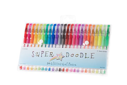Super Doodle - Glitter Gel Pens - 24 Glitter Colors - Premium Quality Gel Pen Set for Crafting, Doodling, Drawing, Scrapbooking, and Adult Coloring Books