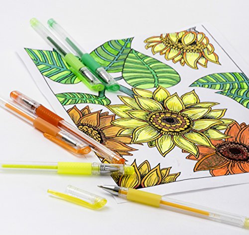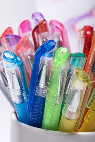 - GLITTER COLORS: Since you love the way the glitter pens bring your coloring pages to life, we decided to create a gel pen set that exclusively contains some of our glitter colors. This will give you a total of 24 unique glitter coloring pens, enough to make your artwork pop right off the page!