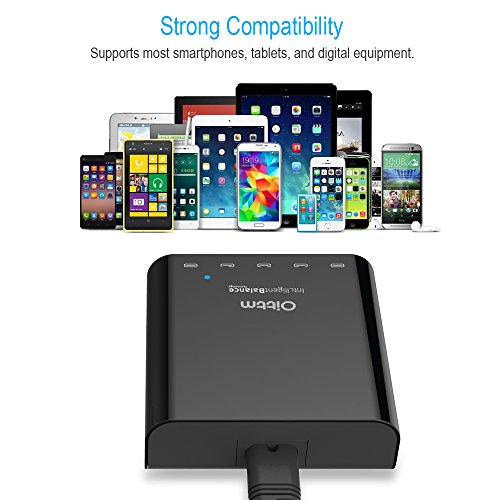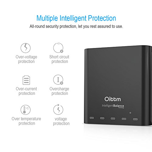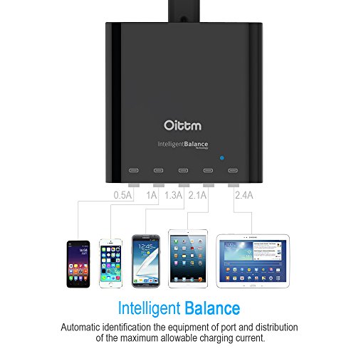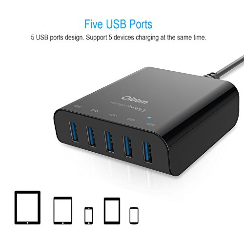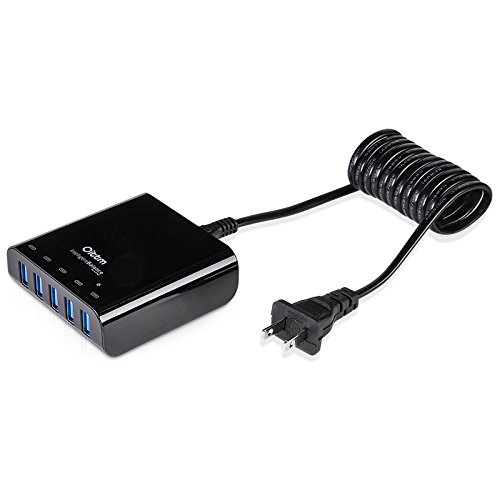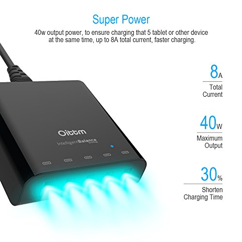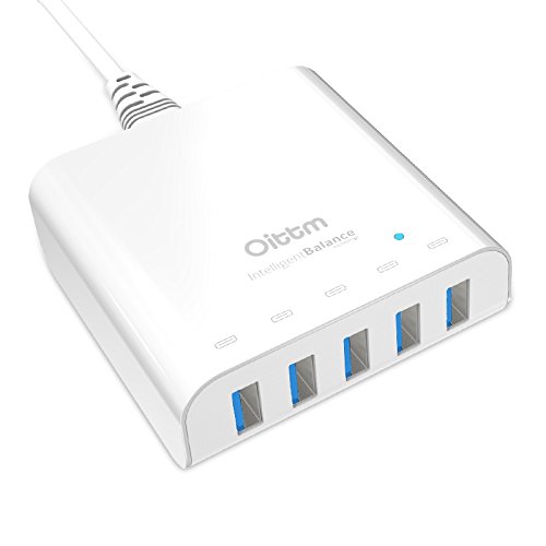 Oittm USB Charger, 40W 5V/8A 5-Port Family-Sized Desktop USB Wall Charger Travel Power Adapter Rapid Charger Intelligent USB Charger with Auto Detect Technology for iPhone, iPad, Samsung, Nexus, HTC, Nokia, Motorola , tablet ,and More (White)